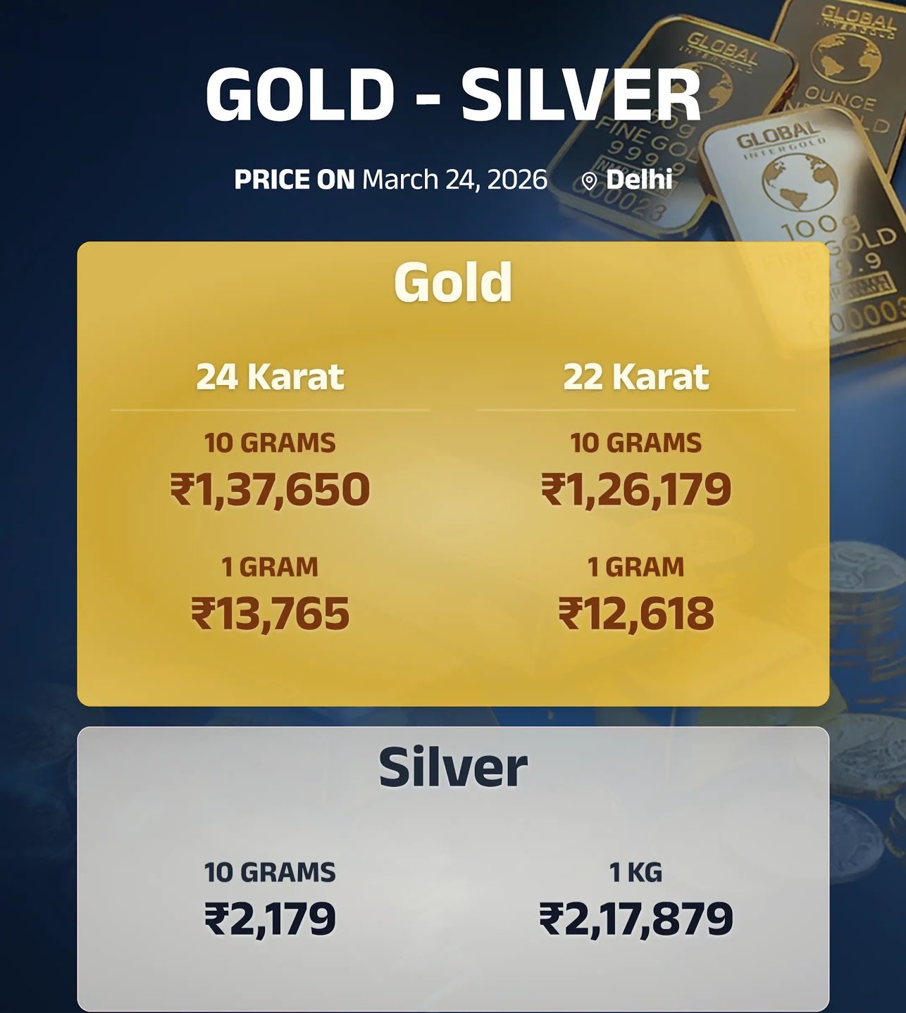 ಇಂದಿನ ಚಿನ್ನ ಮತ್ತು ಬೆಳ್ಳಿ ದರ (24 ಮಾರ್ಚ್ 2026) ಲೈವ್ ಅಪ್ಡೇಟ್ಸ್